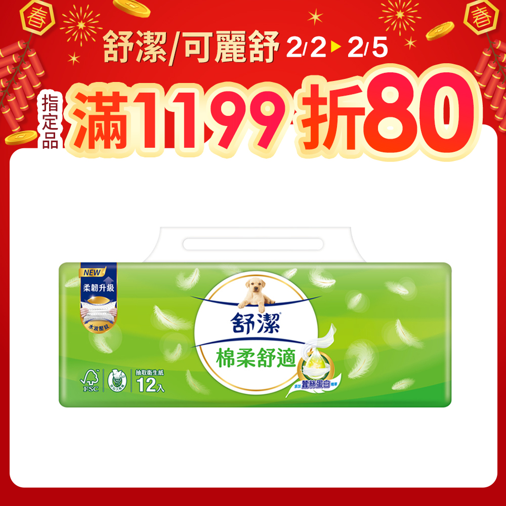 舒潔 棉柔舒適抽取衛生紙 100抽x12包x6串/箱
