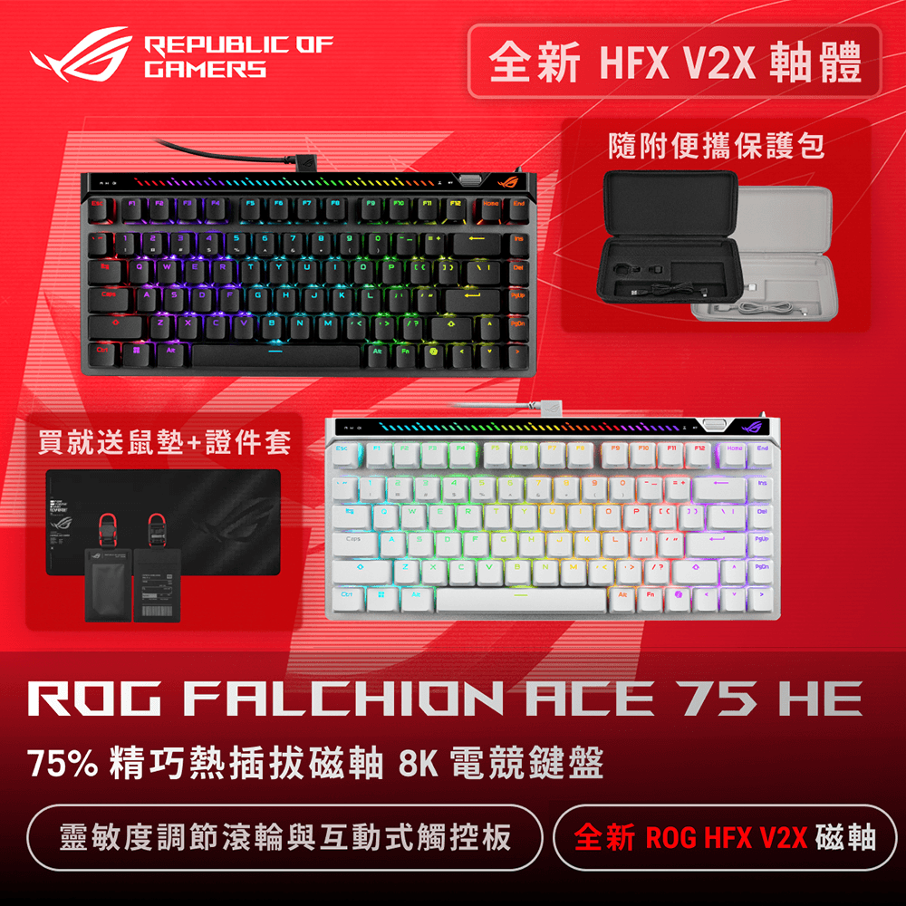 華碩 ASUS ROG Falchion Ace 75 HE V2X磁軸電競鍵盤