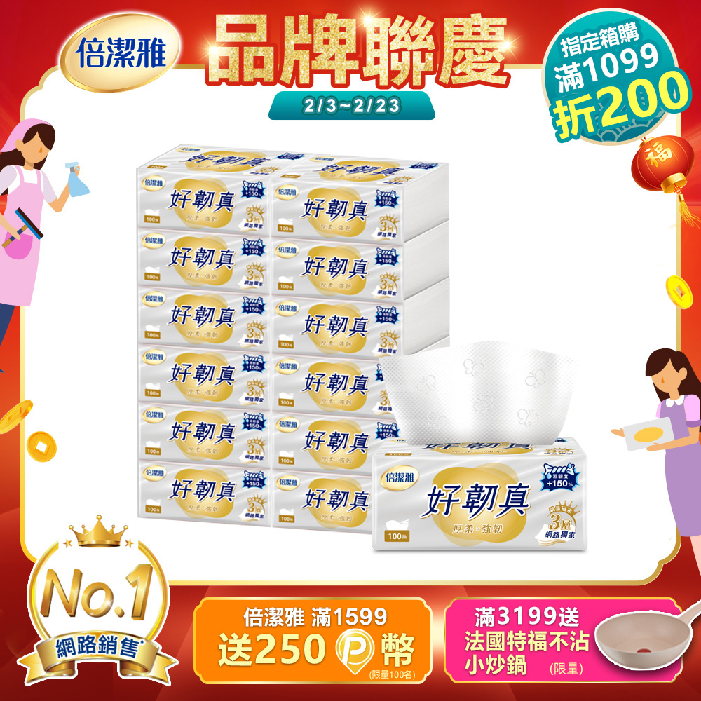 倍潔雅好韌真3層抽取式衛生紙PEFC(100抽12包6袋)